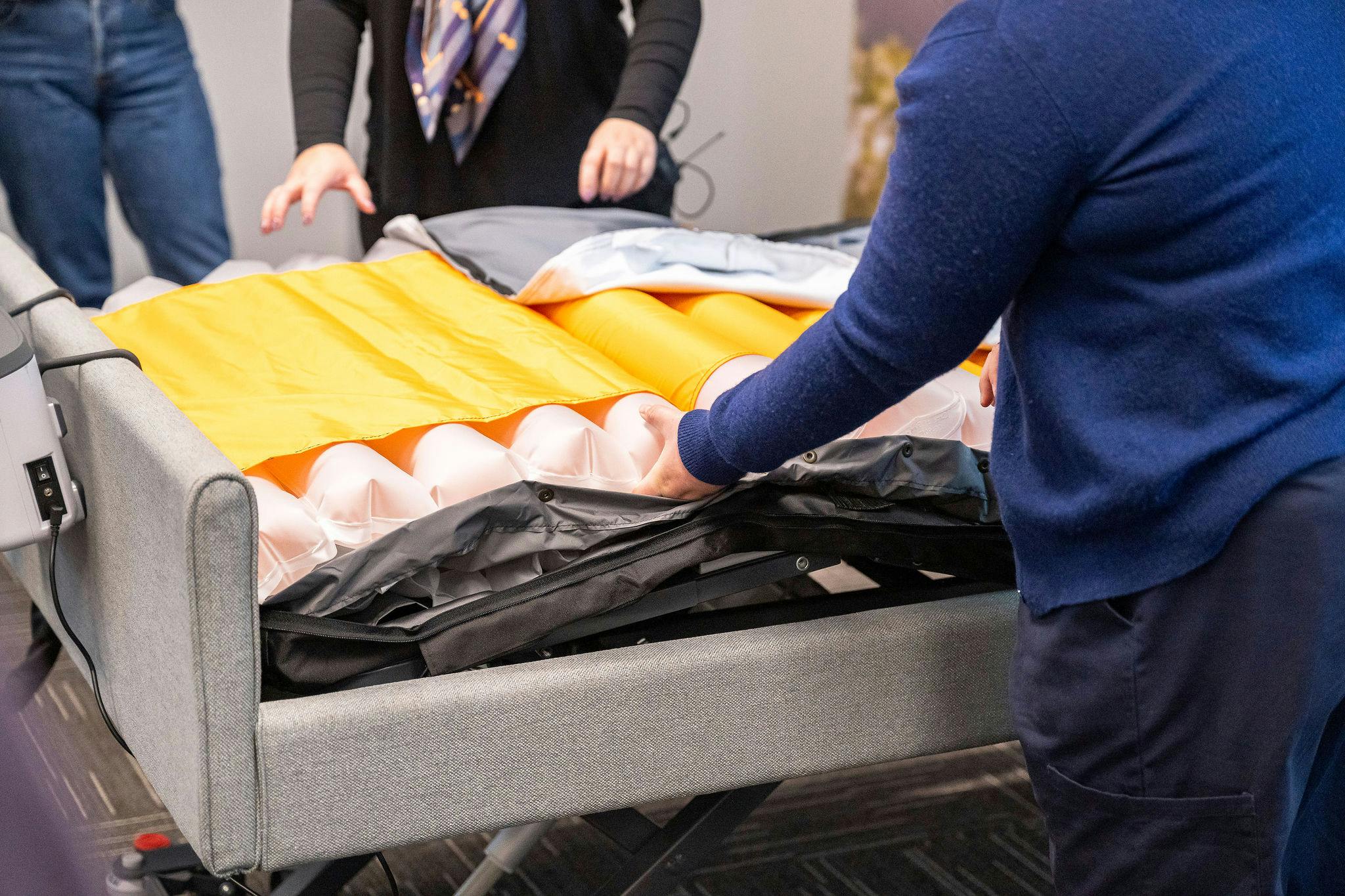 For clients requiring powered air mattresses, therapists used to hear complaints about the noise, feeling cold, and motion sickness.